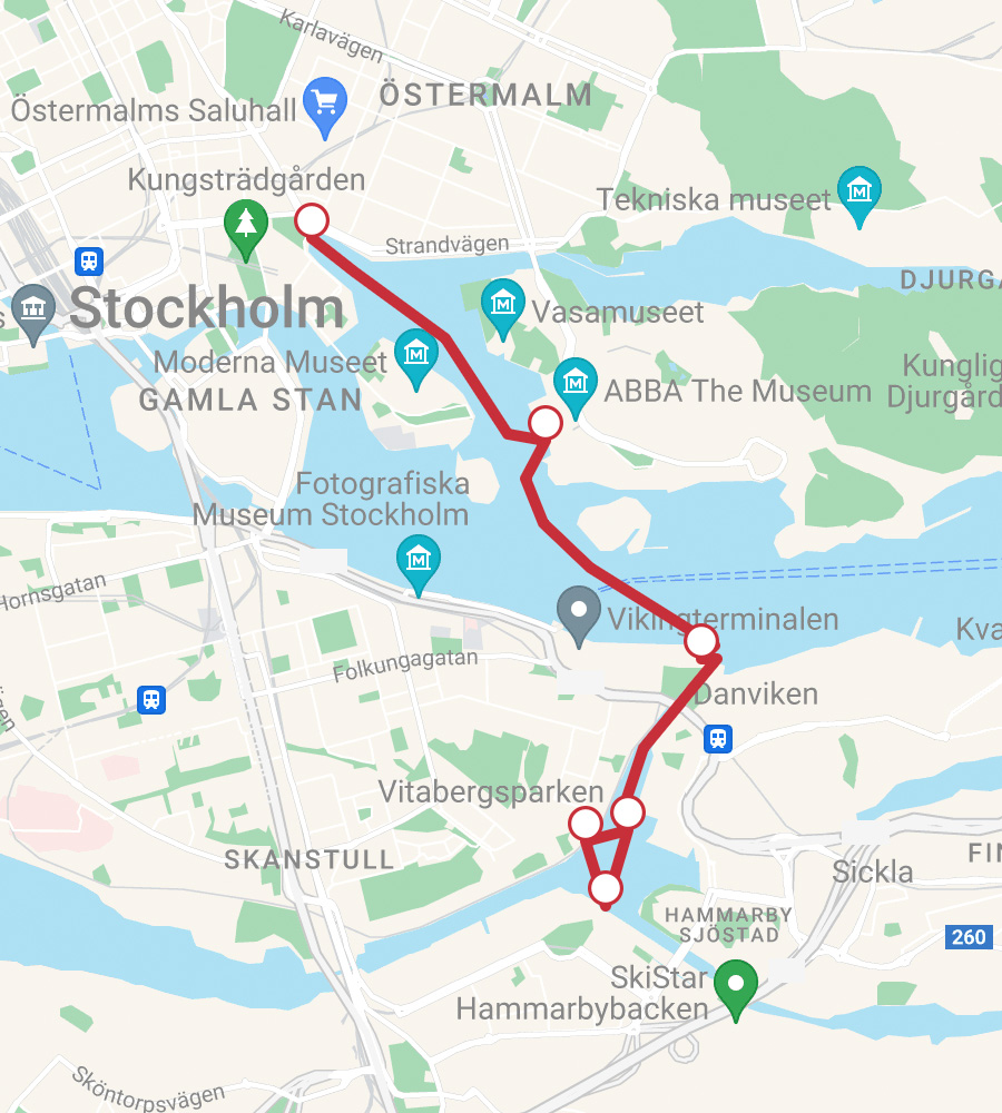 Hammarby Sjöstad – Masthamnen (Vikingline) – Djurgården – Nybroplan